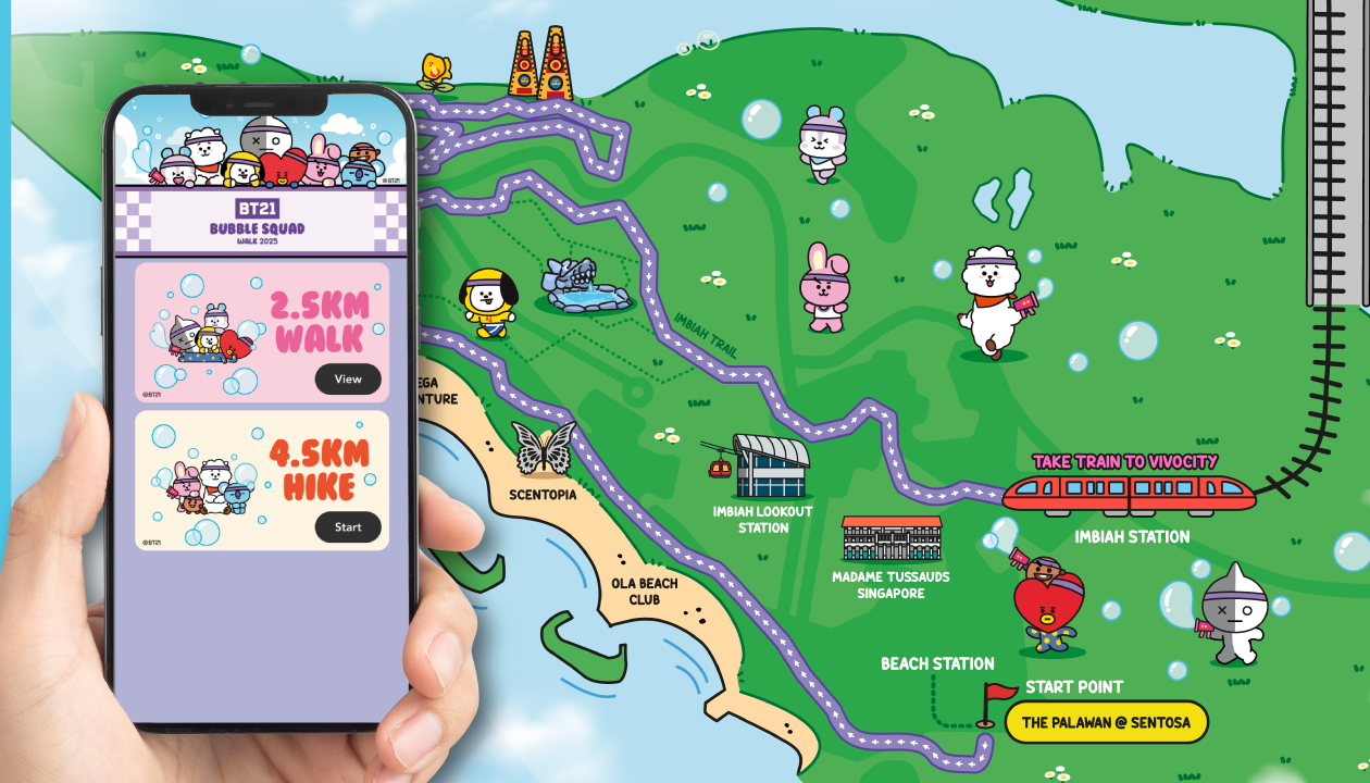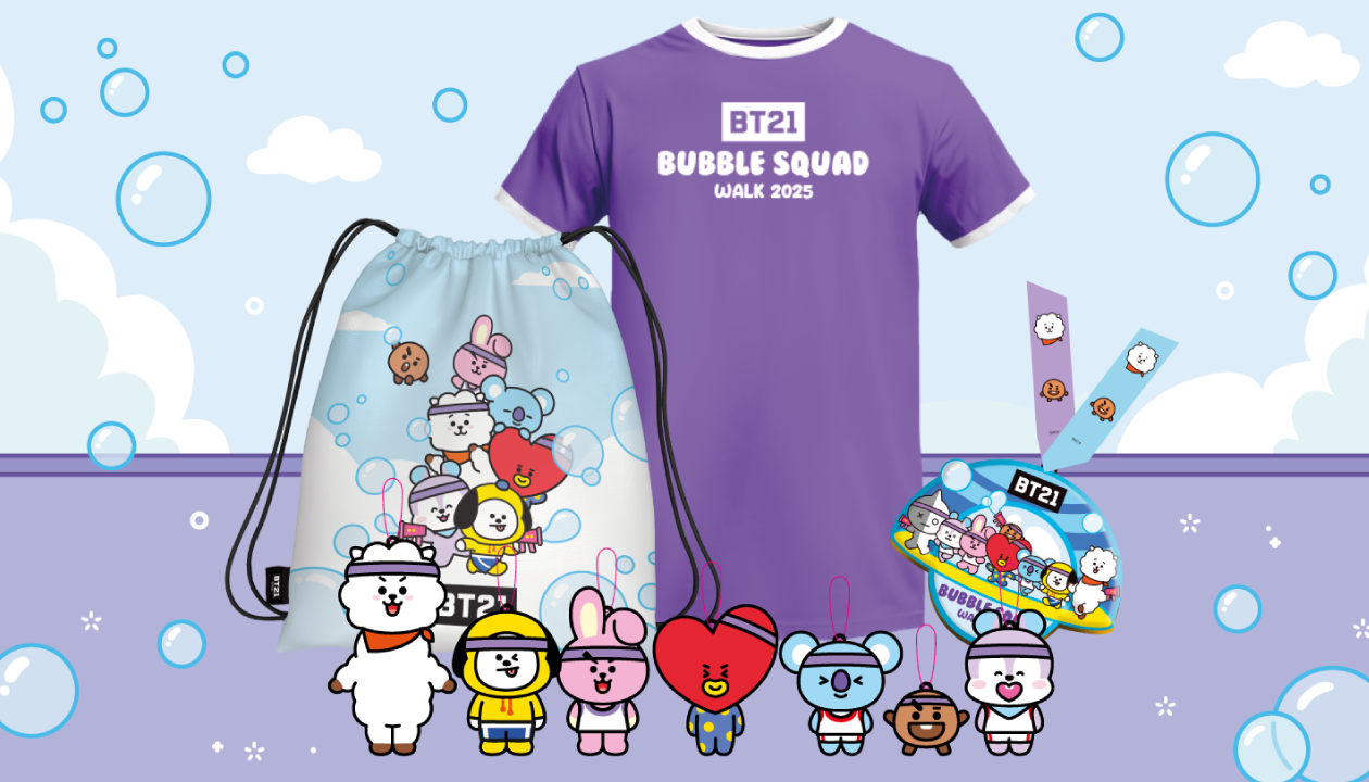 The BT21 Bubble Squad Walk 2025 debuted as Singapore’s first BT21-themed fitness event, inviting fans to join the "UNIVERSTAR" on a vibrant coastal adventure. Held on March 29, 2025, the event transformed the scenic route from The Palawan @ Sentosa to VivoCity into an enchanting bubble-filled playground for participants of all ages.