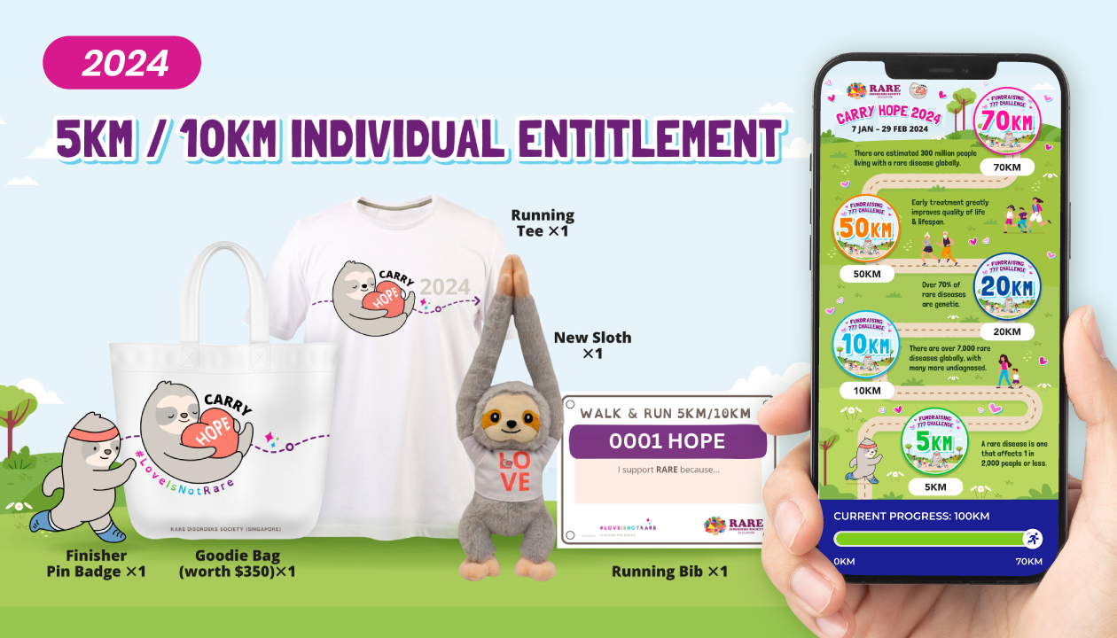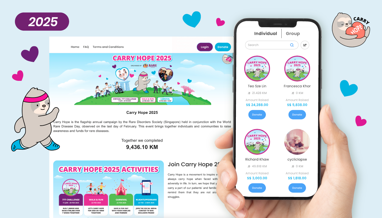 Since 2024, the Carry Hope initiative by the Rare Disorders Society (Singapore) (RDSS) has leveraged a specialized digital ecosystem to drive its national awareness and fundraising mission. The campaign empowers the public to "Carry Hope" for the rare disorder community, turning physical movement into a powerful statement of solidarity.