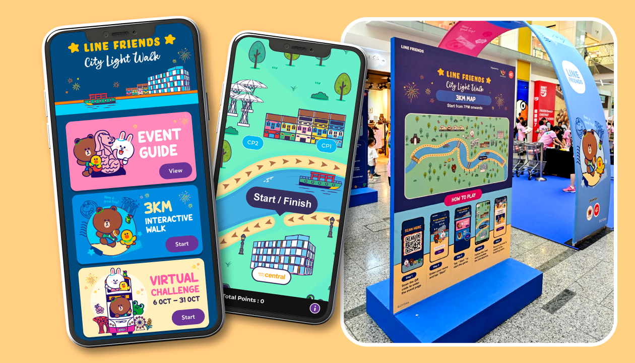 The activation offered two distinct categories to cater to diverse audiences: a 7KM non-competitive run along the scenic Singapore River for fitness enthusiasts, and a 3KM interactive walk designed for families and casual fans. Using a dedicated digital app, walkers embarked on a unique journey to explore "six cities" with LINE FRIENDS, completing location-based tasks and quizzes to progress through the story.