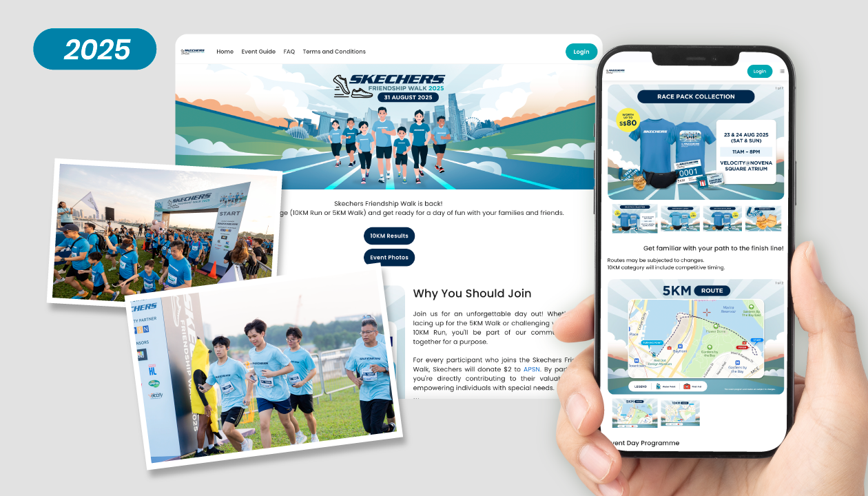 Since 2022, we have served as the official digital gateway for the Skechers Friendship Walk, managing the end-to-end registration process for one of Singapore’s most popular family events. Our role focused on providing a high-performance, secure platform capable of handling the massive influx of sign-ups that occur during the peak campaign periods.